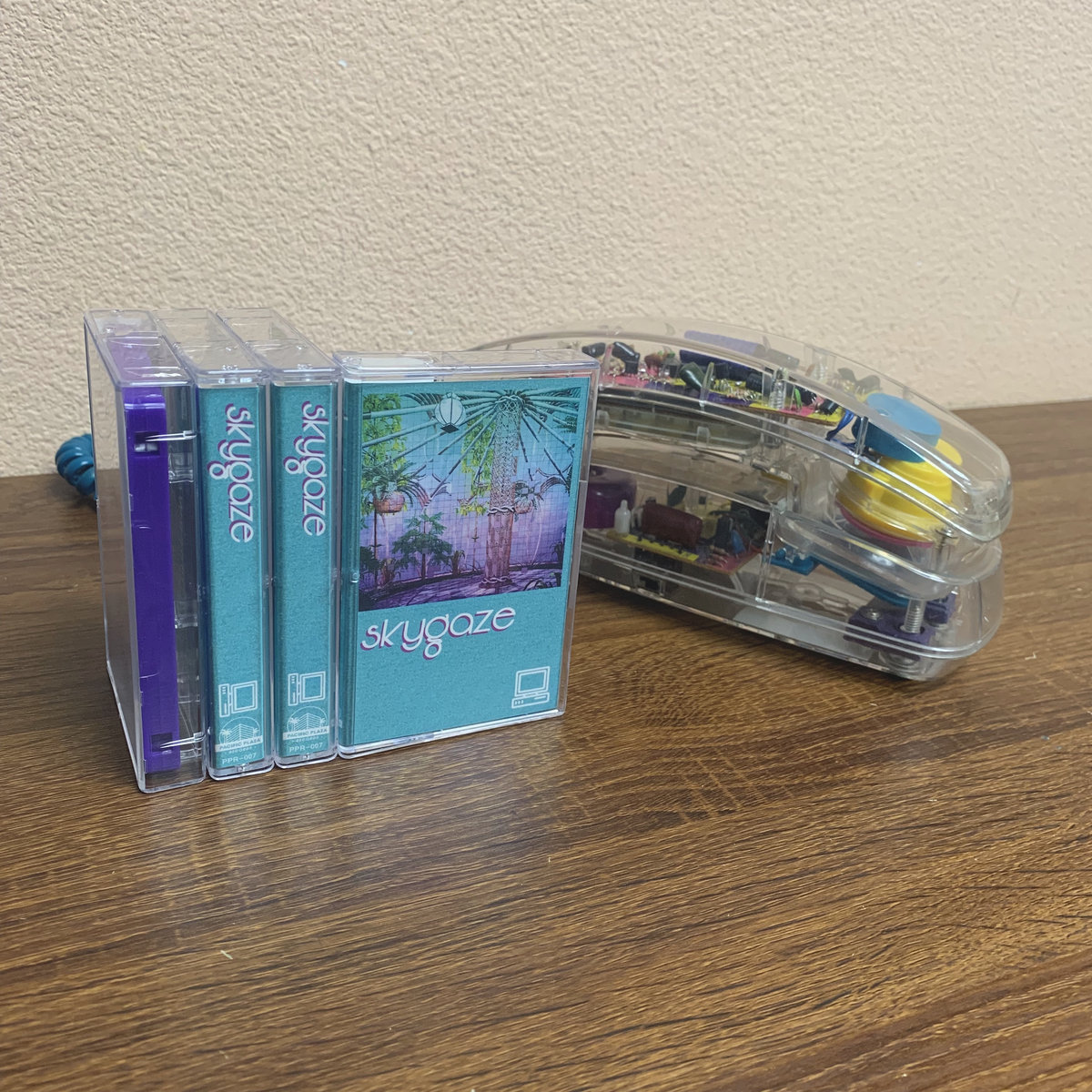 Purple shells with full color labels, packaged in clear norelco cases with full color artwork printed on cardstock. Tapes dubbed in conjunction with No Time Records/Mfg. Artwork by Tyler Ellis