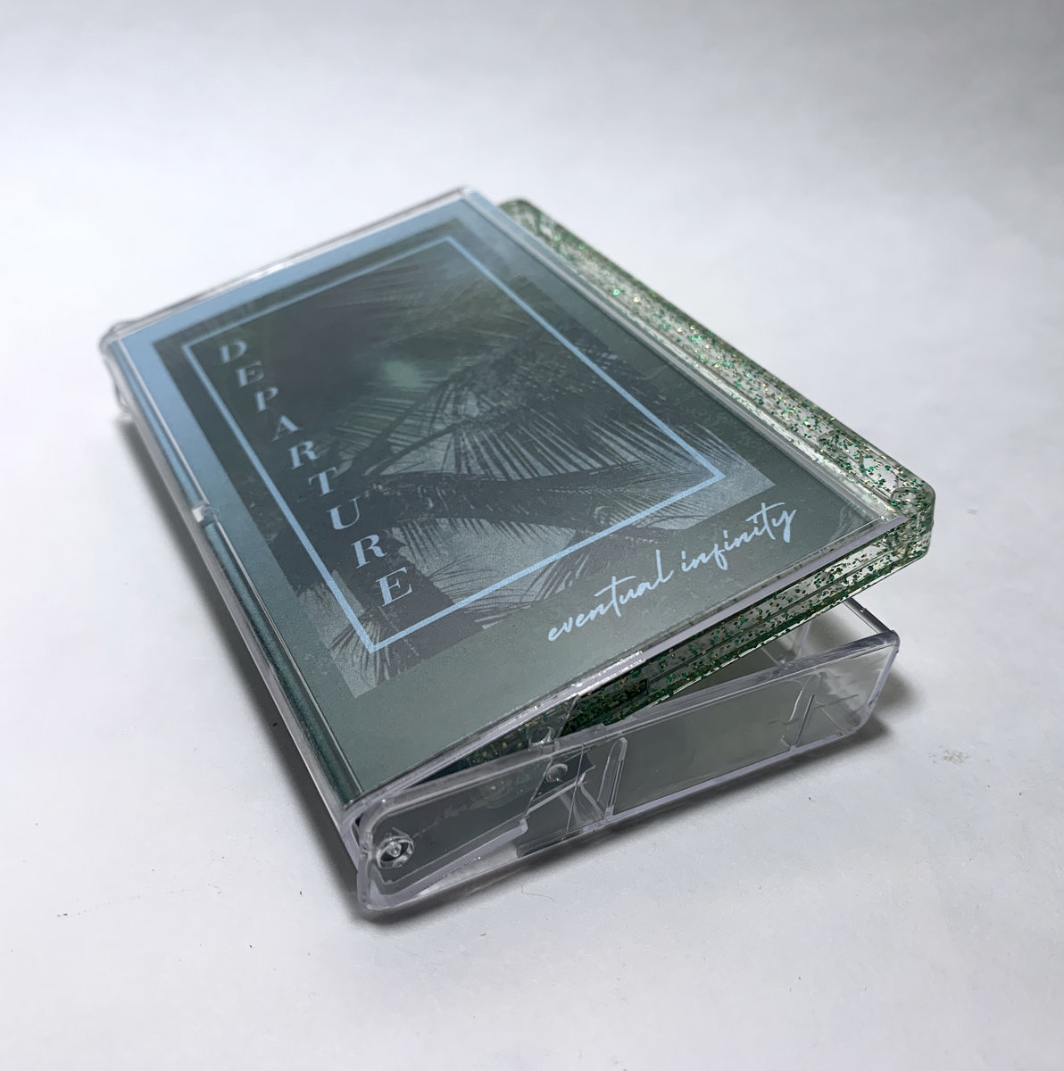 Green-Gold glitter cassette shells with full color labels, packaged in clear norelco cases with double-sided jcards, printed on cardstock. Tapes duplicated by Duplicaton.CA in Canada.